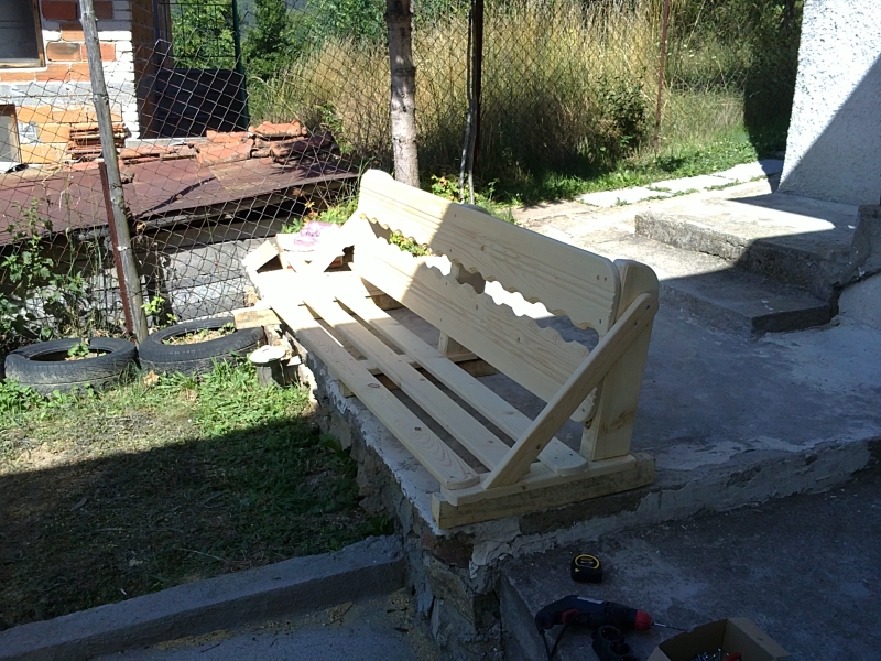 И последно за сега, като приключих остана едно ребро и една челна дъска та набързо спретнах и една пейка, която ще монтирам по късно от към градината директно на каменната облицовка. Това свърших за около 8 дена работа другото време отиде в ракия и хортуване, както му викат по нашия край.