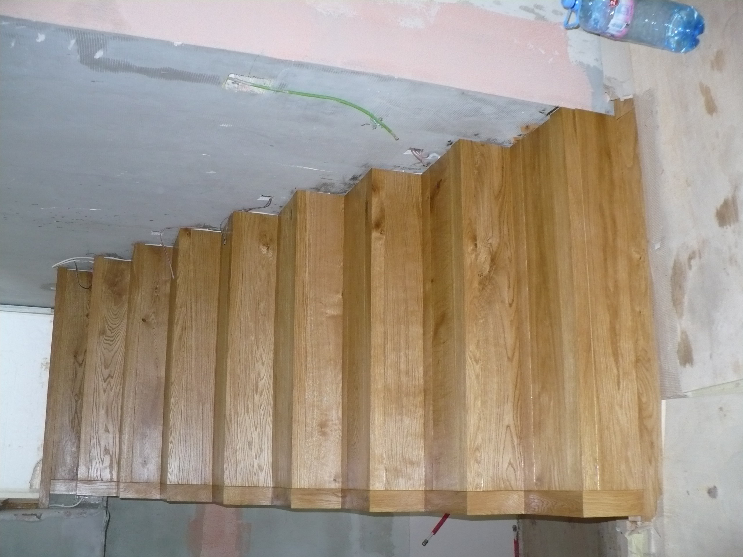 Еди - няма нищо общо с перваз, камо ли с пластмаса. Чисто, натурално, естествено дъбче с изваден фладер и омаслено с Осмо, което в случая се изявява като ... стъпалце.