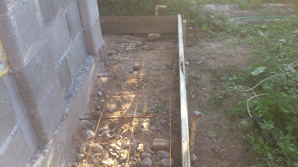Това е подготовка и отливане на пътеки. Отново без найлон, защото се породиха спорове къде се слага найлона - под чакъла или отгоре върху арматурата,преди бетона да се налее.... Е пропуснахме ги :)