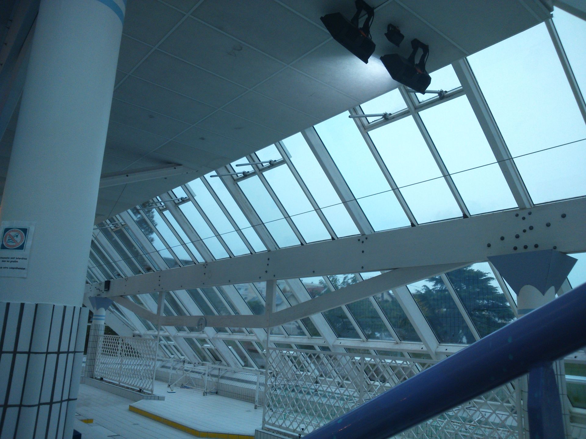 Ето малко снимки от басейна, повечето от носещата конструкция е от дърво съединени дъски. Има алуминиева дограма. Влажността е доста висока :) за съжаление самите носещи са боядисани, ще видя кога ще мога да снимам в болницата или в един магазин там са оставени на лак и е по красиво :).