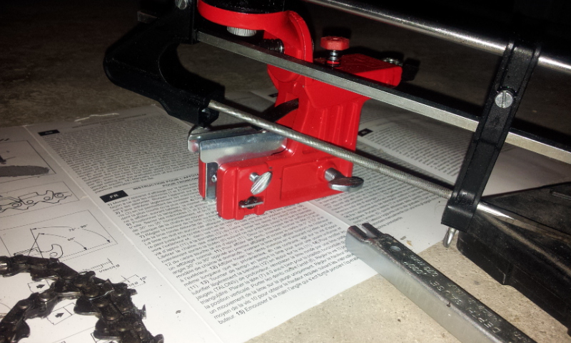Загубих комбинирания шаблон и по този повод, реших да мина на по-високо ниво. Вземах лъкче- от тия, китайските. Първата верига тотално я осрах, но при втората стана (с два три малки гафа) много прилично заточване. Имам някои забележки, но е поправимо.Например кръглите гайки за настройка са афиф работа, щото си трябва прилично стягане.Същото се отнася и за болта, фиксиращ лъкчето към шината. Като цяло съм доволен- за парите си е супер. И ми хваща 10-те градуса :-D .