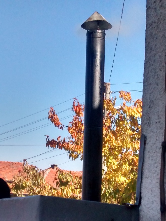 За момента направих временно решение като включих печката в стария отвор, проблема беше че е ф130 а от печката е 150. Взех прав 1м ф 150(10лв) кривка ф150(10лв) и гофриран иноксов на 2 метра(48лв) редукторф150-ф130(5лв), кривка т образна 130 с тапа(10лв), розетка ф130(1.5лв), вата каменна на 4см 2 листа(8лв) и 2х1м кюнци на ф200 . над покрива облякох ф130-ките с вата и нахлузих ф200 отгоре след което сложих шапка (9лв) но на ф 180 че нямаше на ф200 ама ще я сменям, сложих азбестово въже за уплътнение на някой места 2 метра (2лв). Стана много добре, ще направя снимки и ще пусна да се види как е станало.