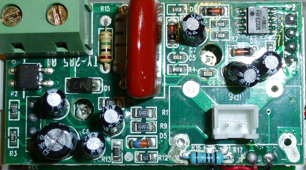 Да точно модификация на панелен волтметър е. За съжаление направили са го неразглобяемо. Не че не мога да ги разпоя но едва ли ще помогне. Има само едно чипче на горната страна EZ328 и така като гледам това би трябвало да е амперметъра но ''чичо гошо'' ми показва някакви глупости за него. На долната са само две плюмки.