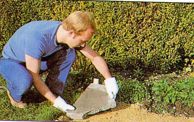 И така,имаме стари парчета тротоарни плочи,или пък парчета камък и каквото друго роди фантазията ви,защо да не ги вкараме в употреба за една пътека в двора ? Като начало е важно да си очертаем контурите на пътеката,най добре с колчета и канап,но ако имате извивки може да ползвате всички подръчни средства за да се получи правилен контур.Изкопайте горния слой почва и махнете всички корени камъни и други препядствия,ако почвата отдолу е мека,предвидете долен слой от чакъл или някаква баластра.С подходящо дърво започнете да тръмбовате уверете се че основата е добре компактирана ,от това зависи бъдещата здравина на пътеката,и най доброто изпълнение ще е съсипано при не добра основа След като трамбоваме следва насипването на пясък върху готовата основа,мисля че около 50-60 мм е напълно достатъчно при добра основа,с парче дъска или каквато и да е права основа подравняваме пясъка