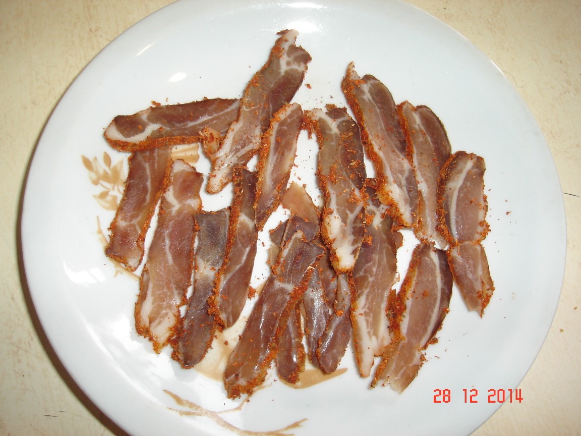 На първата партида пастърмичка за тази година си направих един експеримент. Ползвам мързеливата рецепта спомената още в началото на темата на 1 килограм месо - 80 гр. сол, 20 гр. захар, 100 гр. ракия и 800 гр. вода. Обаче поради малкото място в хладилника този път сложих петте килограма месо в една тенджера и нямаше място за толкова вода. Та замених четирите литра вода с два литра мляко. Останалото си го спазих. Поради топлото време за коледа не беше готова, но снощи свалих едно парче и о чудо - месото е много много крехко. Като вкус не се различава от миналогодишното но е супер крехко. За в бъдеще ще се ползва само мляко