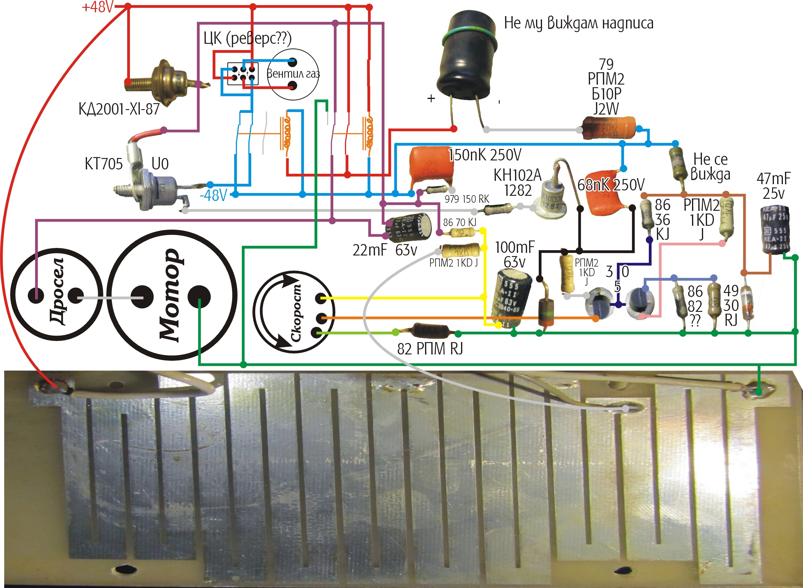 Сега се прибрах и ти разгледах картинките. Спомням си че схемата която си изровил си е куцо начертана и отпечатана и е някакво огромно недоразумение като схема. Занимавал съм се с такива телоподаващи дори в гаража съм с такава изапланова станция. Ама то от как съм я подкарал има 20 години и не съм барал нищо и се позабравя. Та реверса с ЦК ключето и газовия клапан е грешно изчертан. Мисля че имах една редактирана схемичка ама и аз кат се поотопли, че в гаража е по студено от колкото от вън. Та ключето е вързано на захранването на моторчето и му разменя поляритета само. Кондензаторчето в бобинката на релето е заради закъснението на газовия вентил при изключване. Както е по схемата изчертано махаш цялото ЦК ключе от там и си връзваш изводите на газовия клапан направо. А за реверса на двигателчето мисля че е ясно как да го направиш.