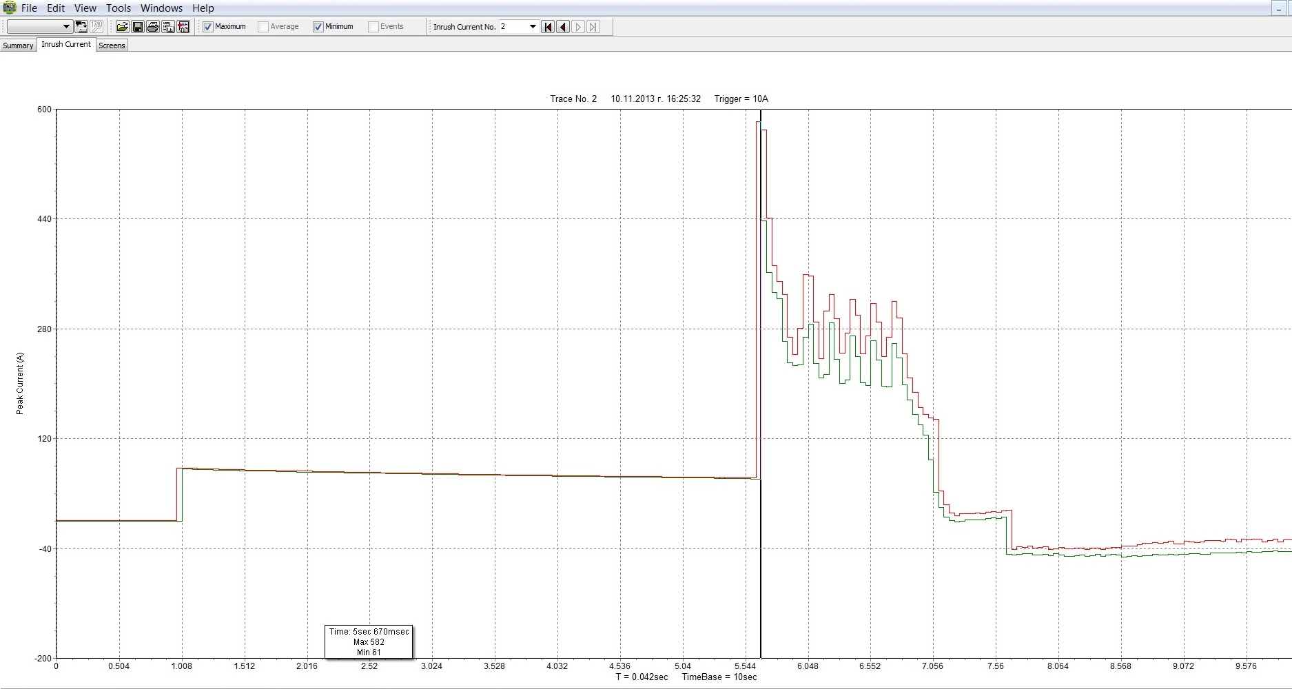 Тези клещи FLUKE 345 изглеждат много добри и бързи. Мисля че само осцилоскоп с включена на входа токова сонда може да изкара подобна графика.