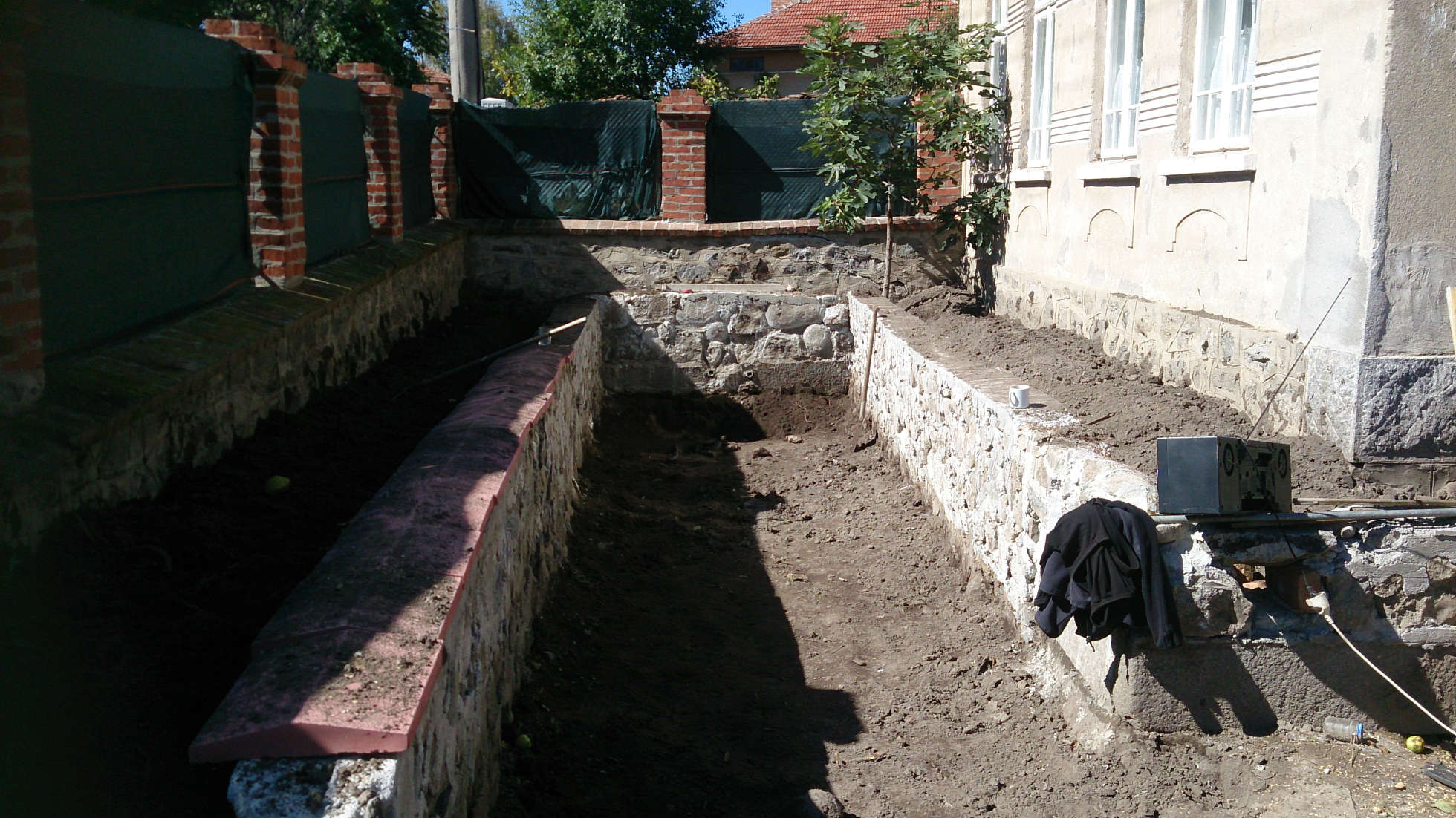 Вижвал съм как го правят. Правят кафраж, редят ред камък, запълват плътно с циментно-пясъчен разтвор и так ред камък. На другият ден махат кофража и със супена лъжица