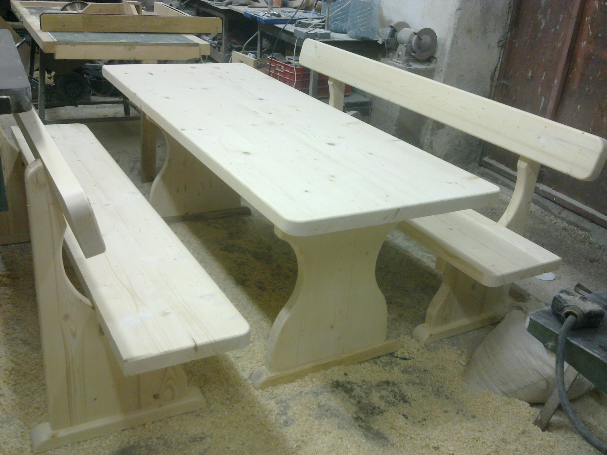 Масата и пейките изглеждат супер