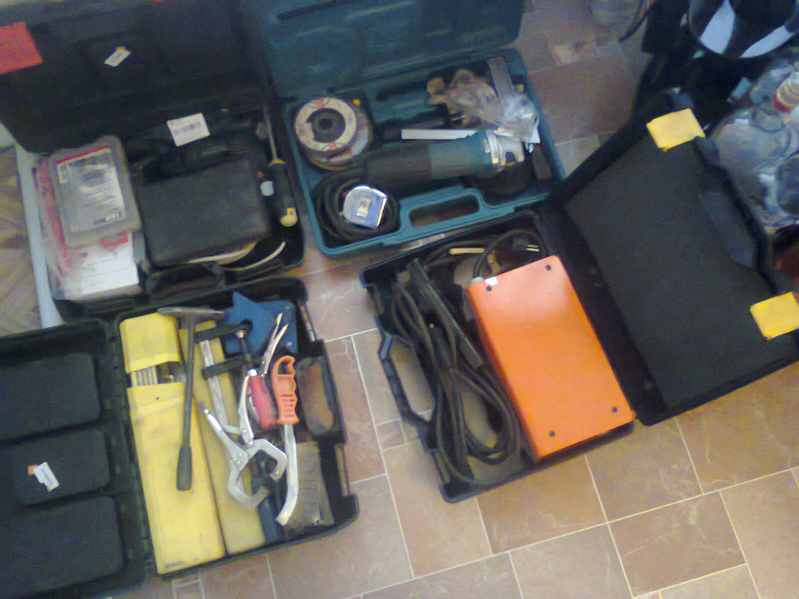 Аз не успявам да събера в един куфар бормашината с аксесоарите и, и шлайфа съответно с неговите си консумативи.Ето го и новия шлайф който взех,вече е дооборудван и навъртя стаж.А куфарите за бормашината и за електродите съм ги взимал от складовете на търговиите за по около 12лв,оказаха се доста функционални и като изработка не са съвсем лоши като за китайци...Куфара за електрожена пък е от Ташев-Галвинг,испански е и страшно удобен и много добре изработен.