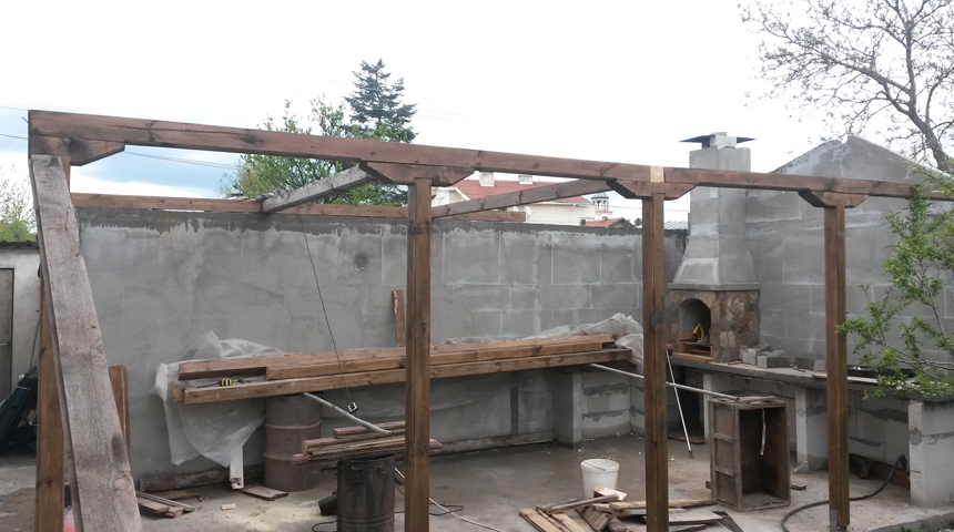 Здравейте, преди година и нещо време най-накрая си надвих на масрафа да си направя навес с барбекю в двора.