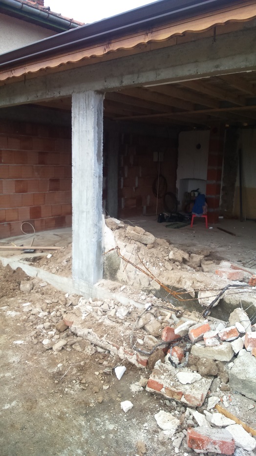 Вкарай някакви железа за да направиш щурц горе . Тая стена трябва да е захваната за колоните. Забелязал ли си как се засичат тухлите на ъгъл като се зида?