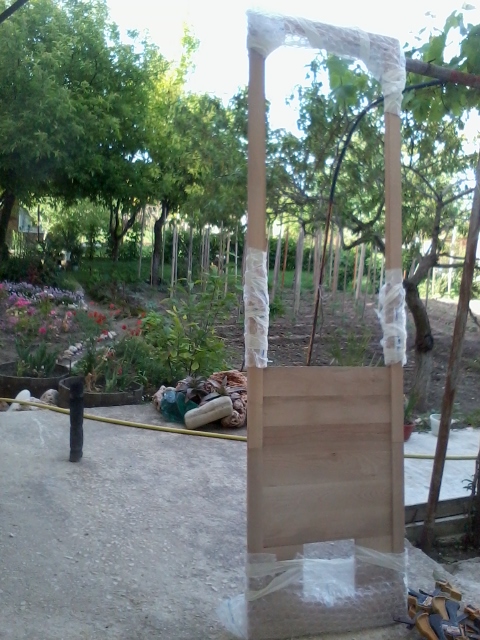 . За тази цел, реших до половината да е плътен, за това и се оказа, че трябва да е дървен ( поне според моите познания ). Имах едни останали букови дъски 8 мм и започна голямото лепене ( може би 10-12 пъти съм стягал елементите с лепило, защото не разполагам с много стеги и достатъчно голям плот в една равнина), което отне може би 20-тина дни :