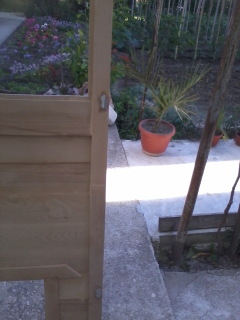 За пантите си мисля да сложа 4 броя, можете ли да ми предложите какви да си взема. Също така се колебая дали да си направя дръжки или да си закупя готови. За заключващите механизми, се чудя дали да са като за алуминиевите комарници или някакъв друг тип ( тук ми е най-трудната част ). Поради ръчно рязаните елементи, на места се получиха леки отвори, не повече от 1-2 мм, дали да ги оставя така или да ги запълня с кит. И последно ако може съвет с какъв лак да го импрегнирам, няма да го вали директно дъжд, но ще е на вън все пак.