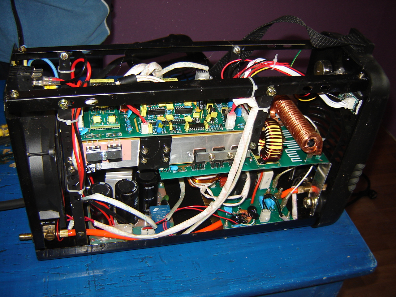 И Елжен 200SL (моята машина е произведена от Youli Electric в Китай, но има европейски сертификат, издаден в Англия от АВТЕК Хаус, Хандфорд, Чешър (правена е по-поръчка на старата варненска фирма правеща преди, а и още трансформаторни електрожени)), та силовата част се състои от 4бр. IGBT транзистора по 44 А, 6 бр. ултрабързи диоди по 25 ампера, 4 бр. филтриращи кондензатори по 470 микрофарада, грец схема - вероятно 50 ампера. Изходен дросел - няма.