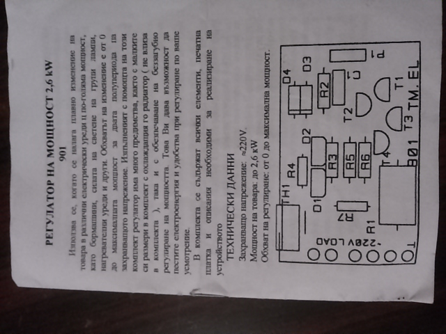 Здравейте, купих си една платка с елементи, която е регулатор на мощност до 2,6kW. Ще я използвам за регулиране на оборотите на една стара дрелка с мощност 360W. Запоих всички елементи по схемата, но имам проблем като въртя потенциометъра по часовниковата стрелка и почти до крайно положение е на максимални и после изгасва до края. А обратното крайно положение не я спира или да работи на по ниски а работи на едни средни обороти.