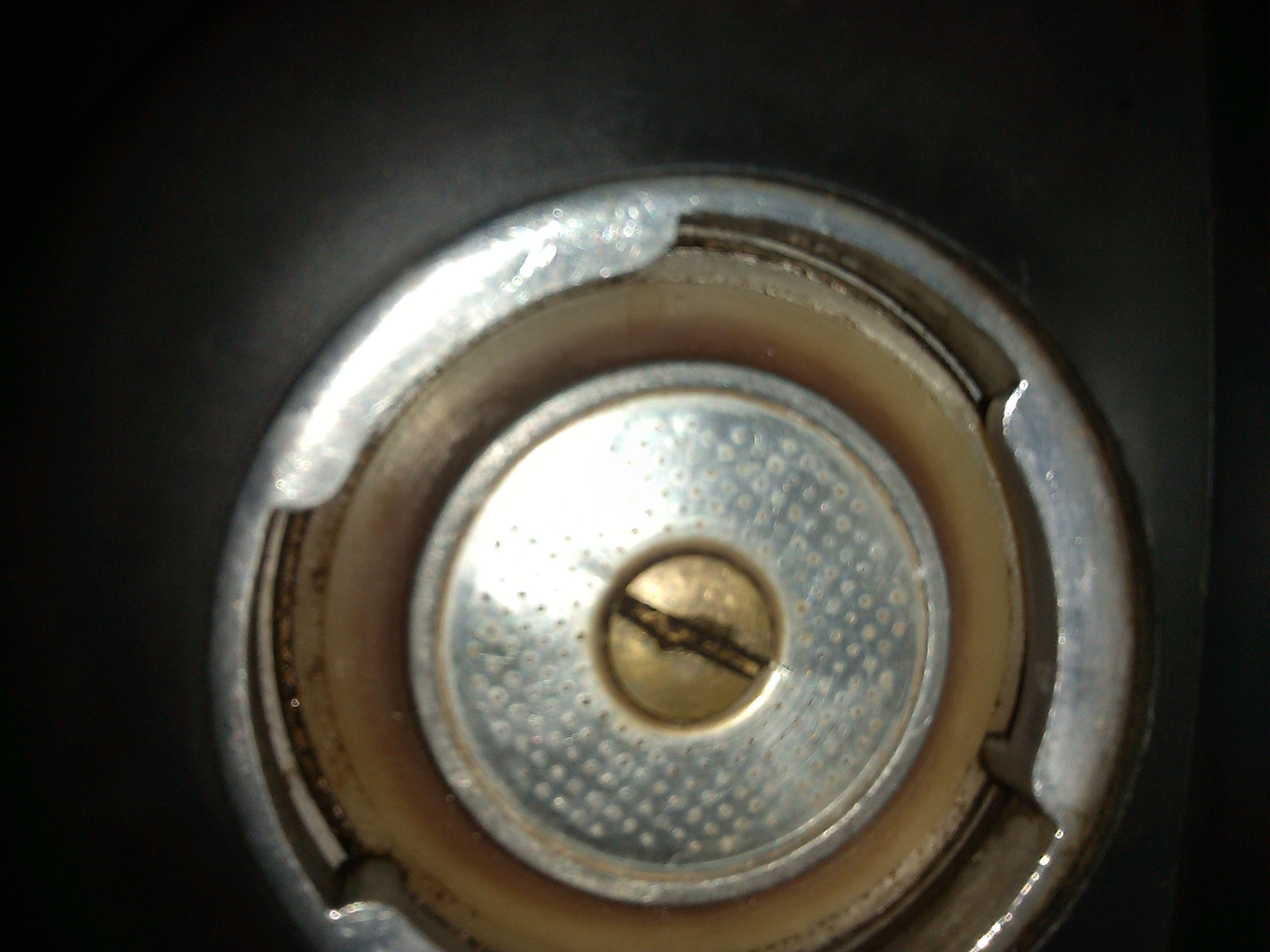 Голяма,широка отвертка.Може с газова запалка малко да го нагрееш,но внимавай за уплътнението!