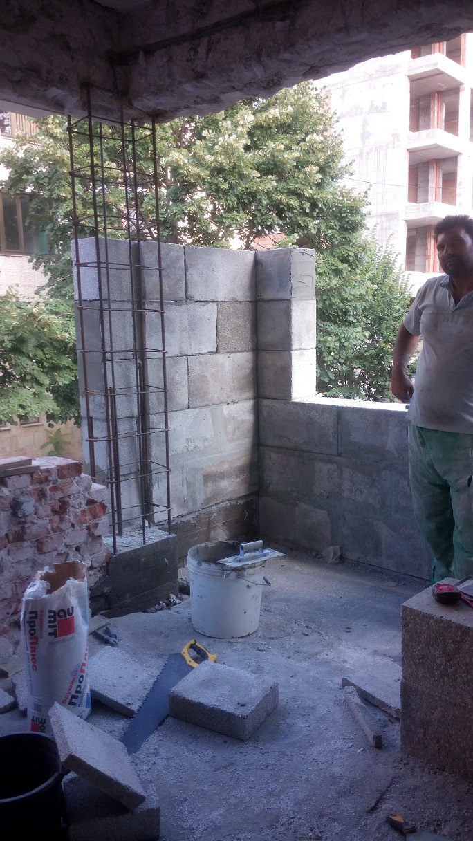 Иска да усвоява терасите и се наложи да усилим единия ъгъл с горен трегер, който да носи тухлите от ЕПС 25/30/60, понеже иначе терасата буквално вибрираше докато ходиш.