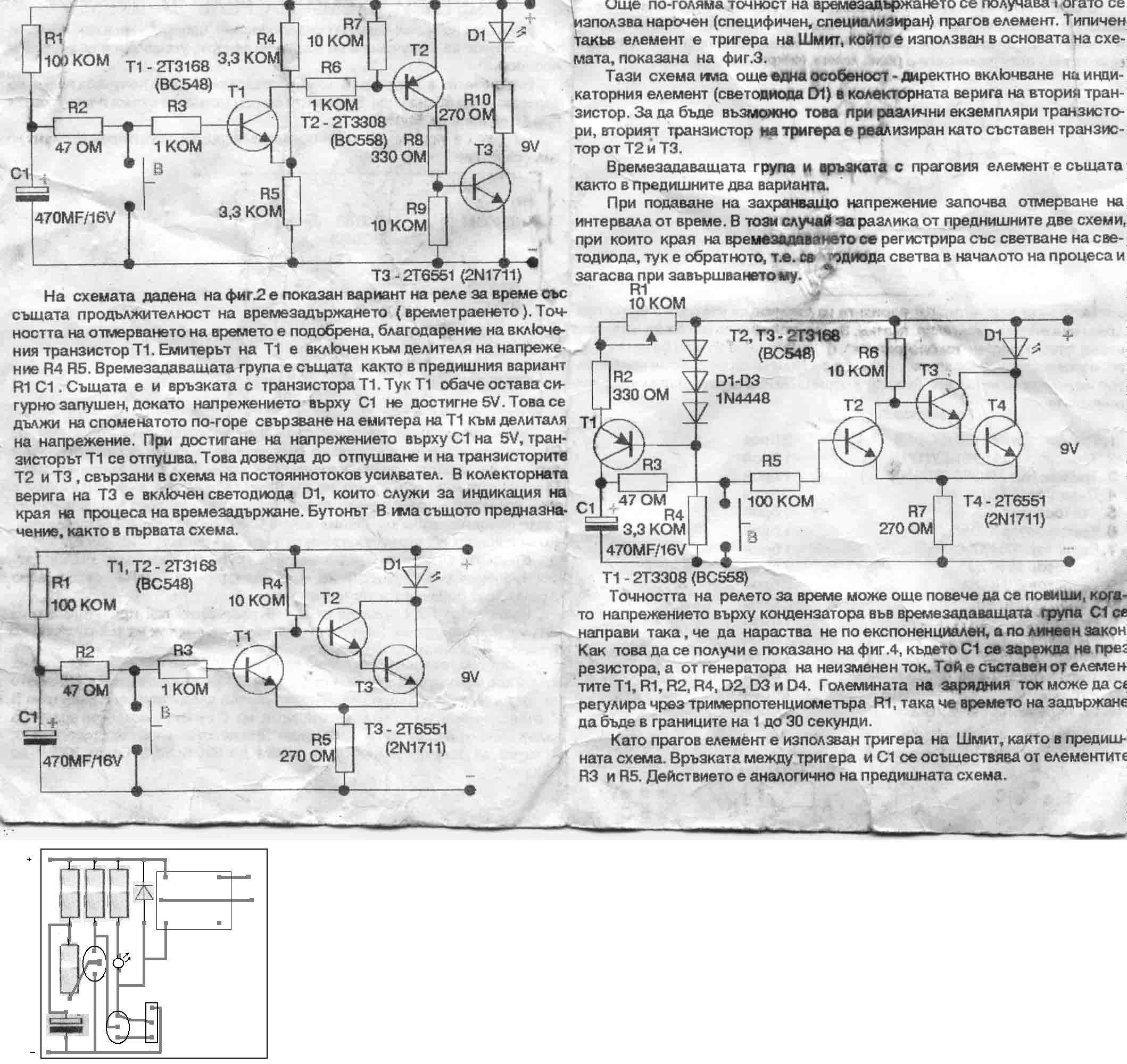 На фиг.2 долу е схемата за време задържане, която ще използвам за ограничаване на подаването на напрежение за 1-2 секунди, понеже след 3-ри секунди задържане на пуша, контакта влиза в режима на обучение. Сега го правя с последователно пускане и спиране на захранването за кратко време от клавиатурата на телефона, но ако се ползва GSM система с СМС контрол ще е необходимо да го има, защото докато изпратим СМС за спиране на напрежението ще минат повече от две секунди време.