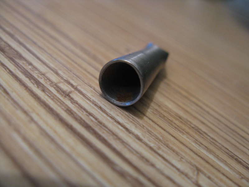 lov, абсолютно съм съгласен с всичко което си написал. опитвал съм с дорници по различни начини, и на топло, и на студено. резултатите не ме удовлетворяват, само пребвам заготовката. скоро даже ми хрумна да подам конусен дорник към втулката преди да и оформя върха. скъса се в дъното на конусния отвор. за предврителния отвор ще те послушам, просто патронника е смотан и малките диаметри му убягват. ще търся по хубав. не мога да си отговоря на въпроса: как може това свредло, или зенкер, или каквото е там да го направят с такава тънка опашка? 6 мм, че и със засечка на 5 мм до самото свредло. сигурно нарочно, за да се строши по бързо?