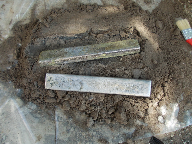 За останалия след леенето алуминий правя в леярската пръст форма и изливам слитък за следващото топене. Готовия детайл от леенето в гипсовата форма - на едната снимка в едър план съм заснел единствените две шуплички, които се появиха след фрезоването. Вероятно има и други, но при фрезоването, заради "замазването" са се скрили.