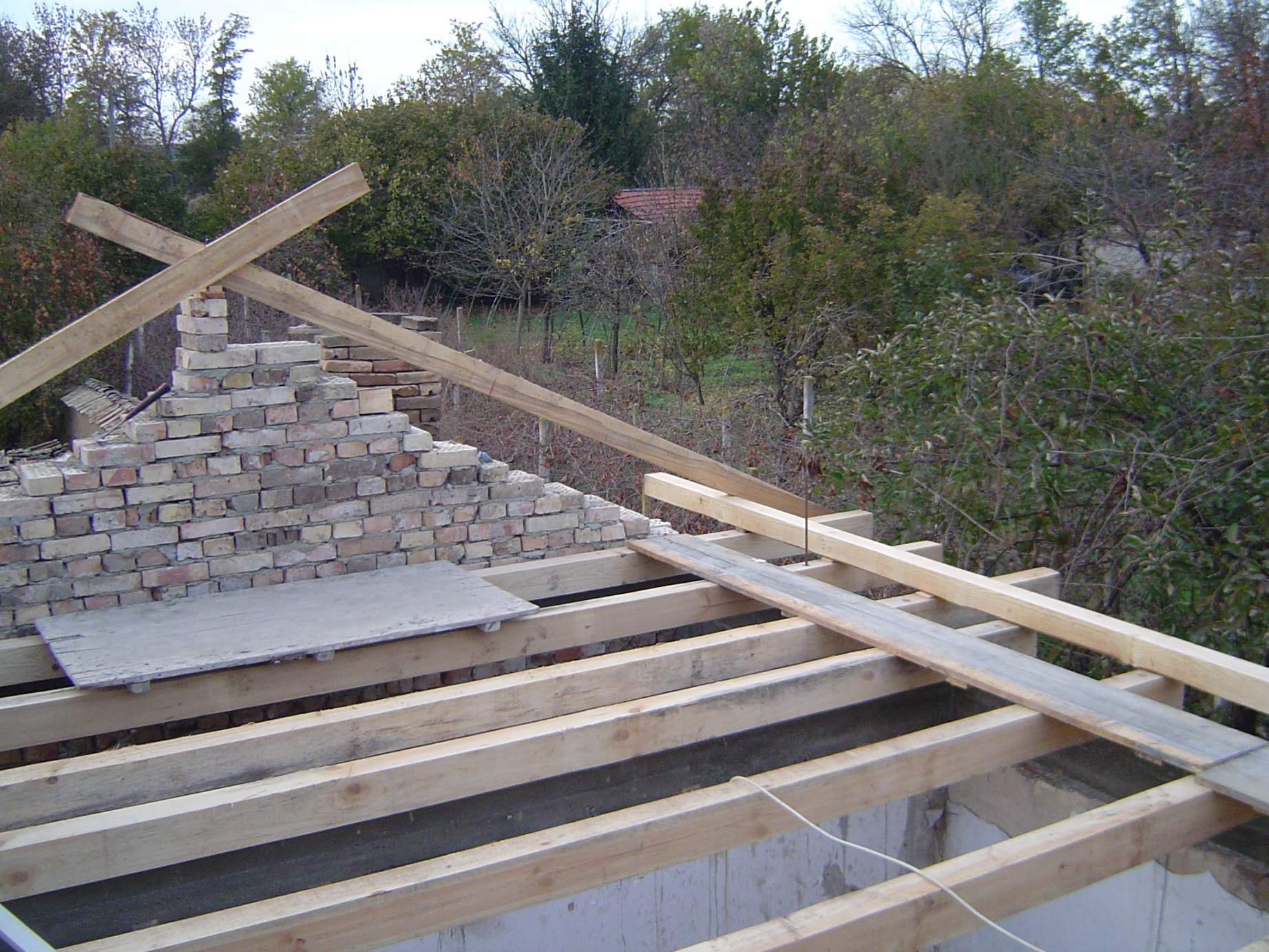 Мислех да пусна тема ремонт на кирпичена къща, но понеже част от покрива е "висяща" конструкция, ще е по удачно да е в тая тема. Покрива е двускатен.