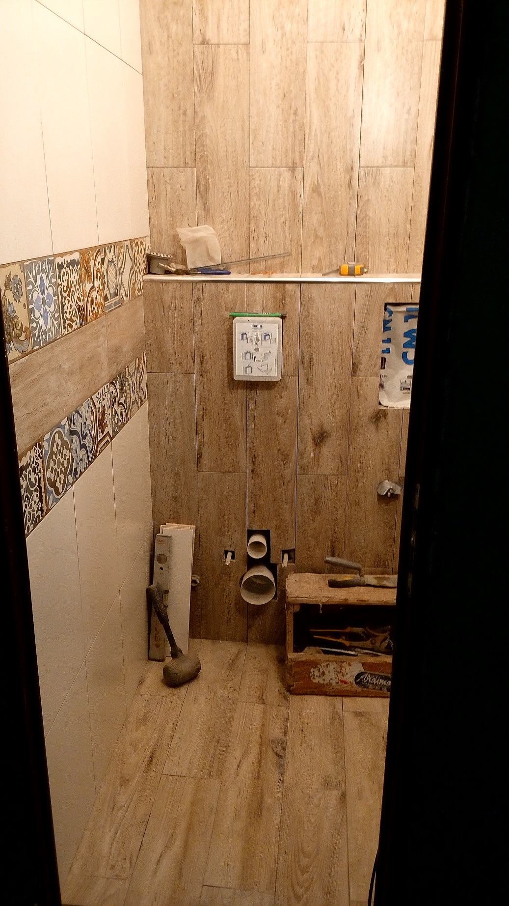 serel също имат такава - 12 или 13 см беше. оня ден най накрая я затворих. най голям зор видях с позиционирането на тръбата ма канализацията в която се вкарва редукцията от окомплектовката. крепежните са пародия, слагах в стената шпилки с химичен анкер. и при мен стената отзад е тънка, но поне е от единички.