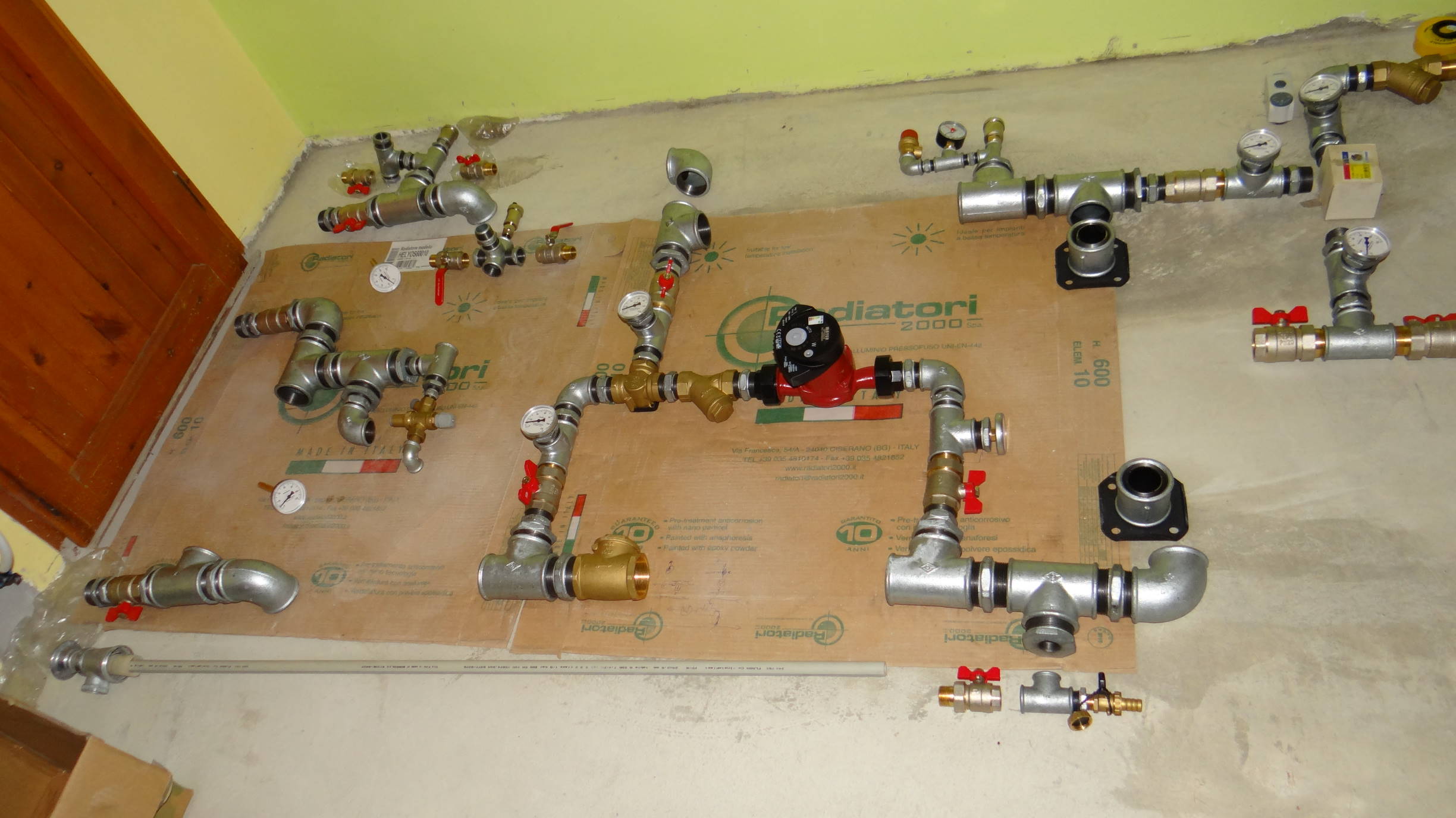 на право ми се зави свят дотук. а още не бях почнал да работя по котела. Първия етап приключи нанесоха се пак жената и детето, и поне не стоя гладен, има кой да готви. Реших да приключа засега на етажа и поръчах по голямата част от оборудването, а докато го сглобя ще се топлим на климатик. Повечето от нещата пристигнаха и реших да направя една суха сглобка, ще приложа и снимки за да ми кажат Гурутата на парните инсталации къде евентуално ще допусна грешки