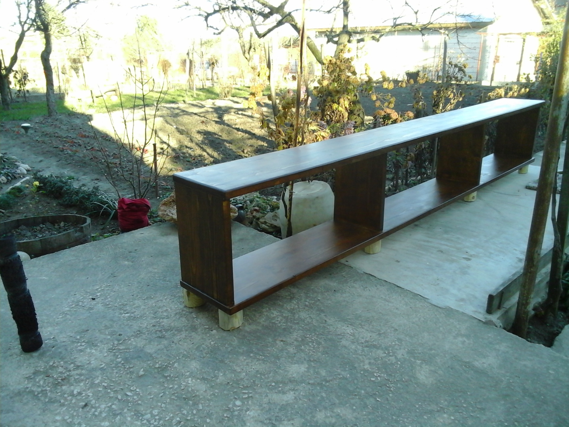 По празниците, между масите, направих ново допълнение към стойките за колони :-). Все още не е довършено, но за утре се надявам да е готово. Бях забравил каолко голямо удоволствие е да се работи с качествен ръчен иснтрумент, всичко е заглаждано с рендета. За последен път ми е да се опитвам да направя мебел дълга повече от 3 метра. Голямо нагласяне беше, но се възползвах от едни ъгли които си правих преди 2-3 месеца(копирани от Грифин и Бимбаецо ), без тях може би щеше да е невъзможно.
