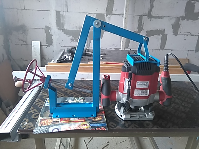 Ето го и механизма за оберфрезата. Само да го монтирам под масата.