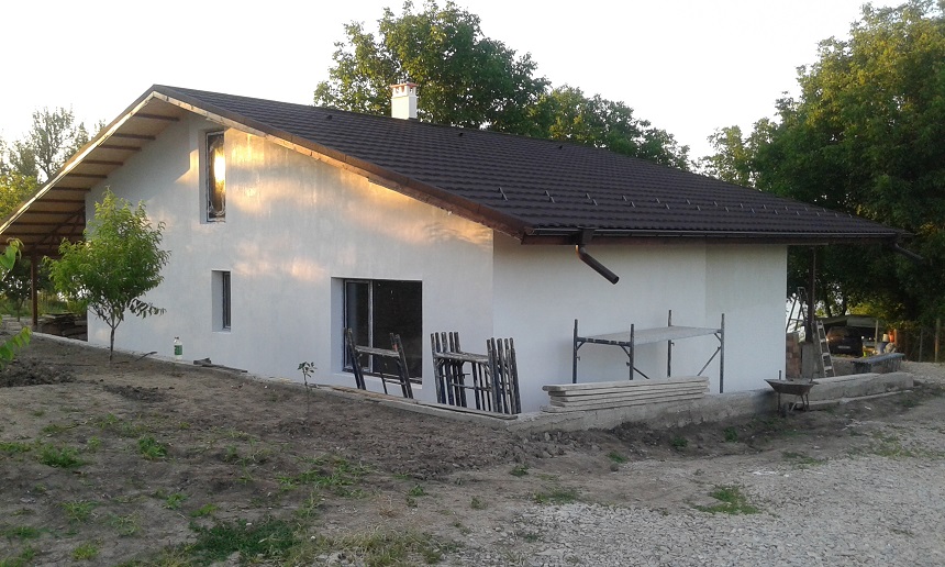 Къщата е станала много добре :supz: Идеята с изливане на пътеките предварително ми хареса, при мен го пропуснах.... Не разбрах защо от едната къса страна колоната по средата излиза извън равнината на тухления зид... :? какъв е замисъла?