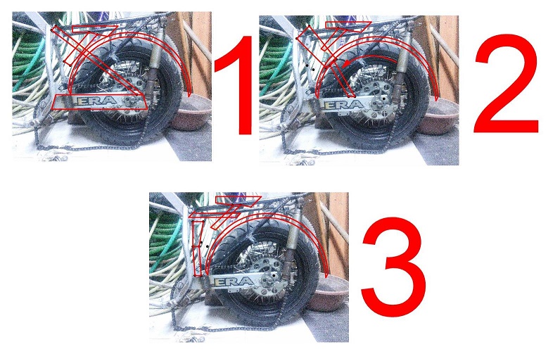 като съм премахнал ламаринта и сложих задната главина от оригиналното колело. Голям зор видях, докато улуча разстоянието междупките и центроването, но се оправих.
