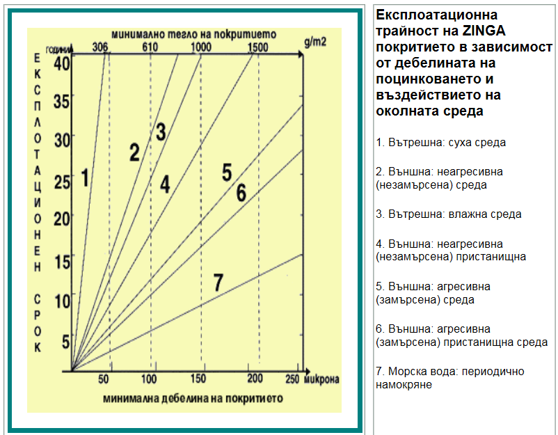 Да, Zinga е един от начините и вай единственото "истинско" студено поцинковане, затова давам и таблицата за експлоатационната трайност.