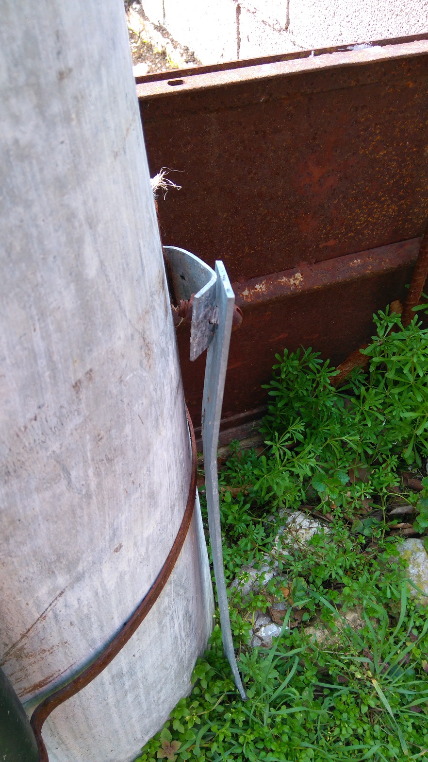 . От болта на шината тръгва едно парче ръждив тел за бали и заземява онези кофражни платна отзад.