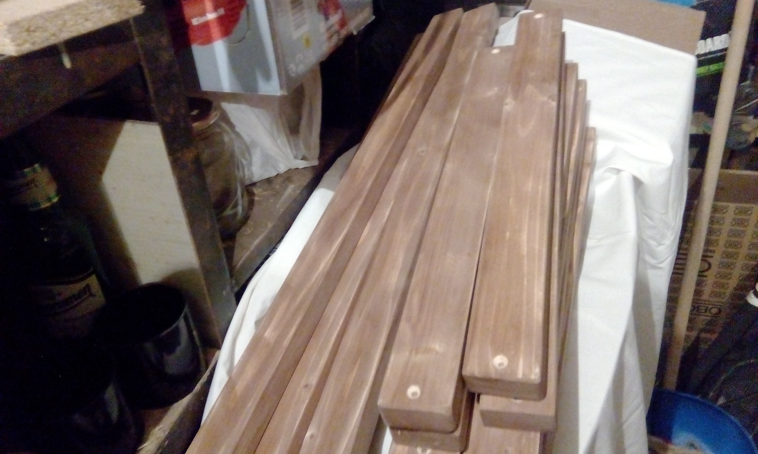Направата се оказа по-сложна от чертането на SketchUp. Лака е Орех от Лидл и очаквах да е малко по-светъл. Има си забележки, на плочките куцаше с 4-5мм(но не падаше ;). На балкона е ОК, натоварих го и не се счупи. Върши това, за което е направено.