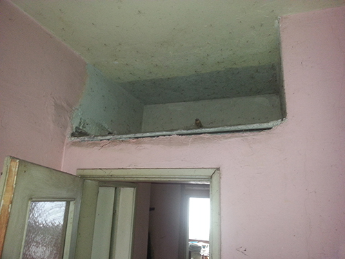 /. Изчистих цялата мизерия, даже измих плочките въпреки, че ще се къртят, само защото ме дразнеха! Балатума е в кофата, под него е паркет - мокър, изкривен, изгнил на места...ще ходи и той до кофата. Стените са с латекс...мръсен, мазен и ос**н от хлебарки /милиони са!/.