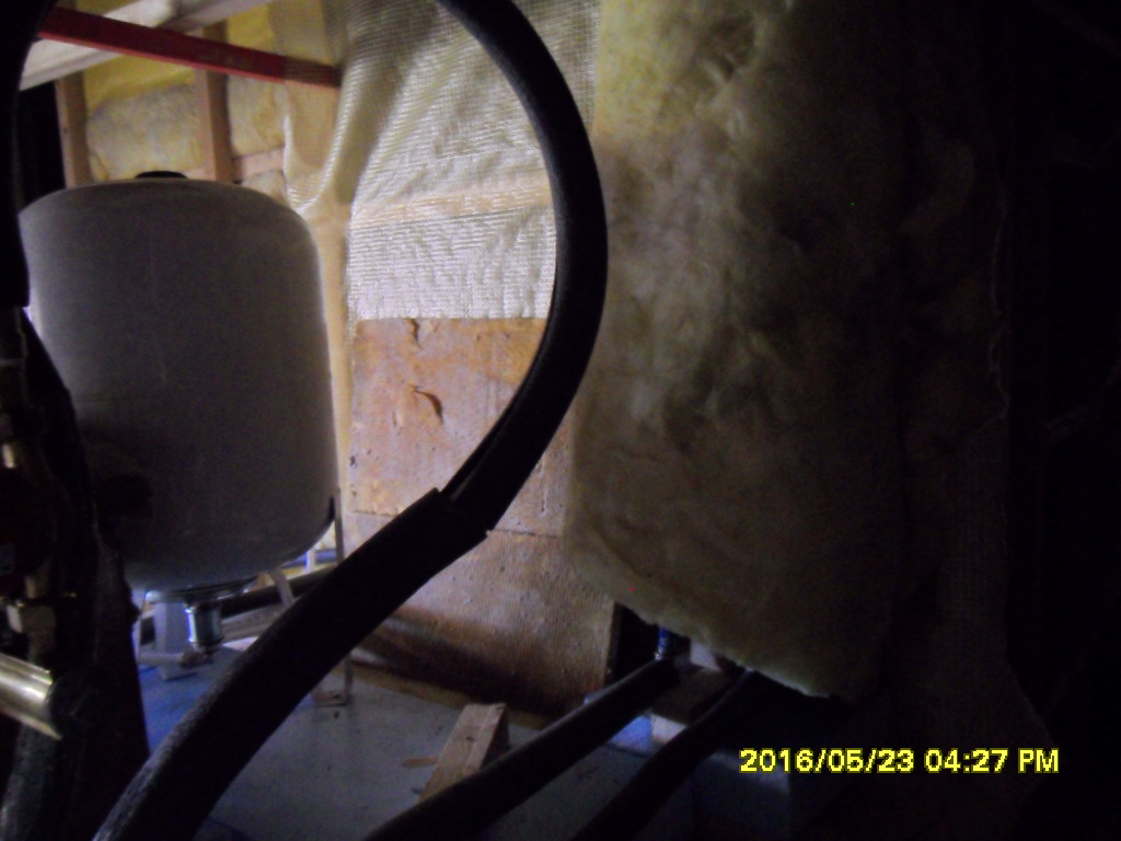 Прилагам и снимки на суровата система. Тя е на два дни ( единият бойлер от 80л. още не е подвързан, защото му оправям фланеца, единият от 120л. бойлери утре ще го присъединя.) Повечето тръби са още неподредени и без изолация. Налягането е около 3 бара. Разс. съд е 50 литра ( голям е, но такива имах под ръка и е подходящ за надграждане на системата. Колекторите, които в момента съм подвързал са 4 бр ( 20 и 30 бр вакумни тръби и 2 бр плоски медни селективни х2.5м2)