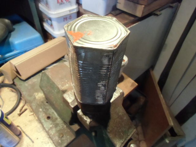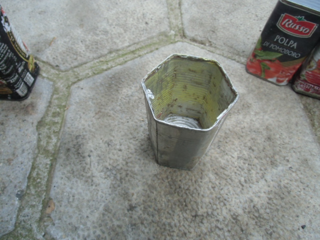 Днес намерих едно парче желязо ,шестоъгълно 60 мм и като нахлузих една кутийка ,за няма и две минути я направих шестостенна.