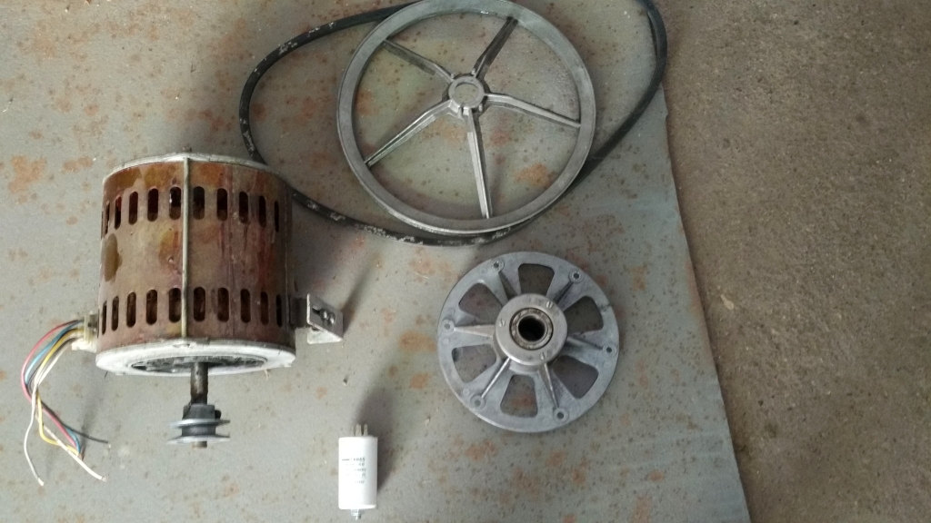 Знам, че същия мотор го гласих преди време за друго нещо, но като се изровиха схемите и се оказа слаб. За съжаление сега не мога да открия старата тема... Пералнята беше Тамат 500, а следващите са снимките от мотора и другото, което остана. Ще поровя още и се надявам да открия и барабана, тъй като не намерих ос за голямата шайба.
