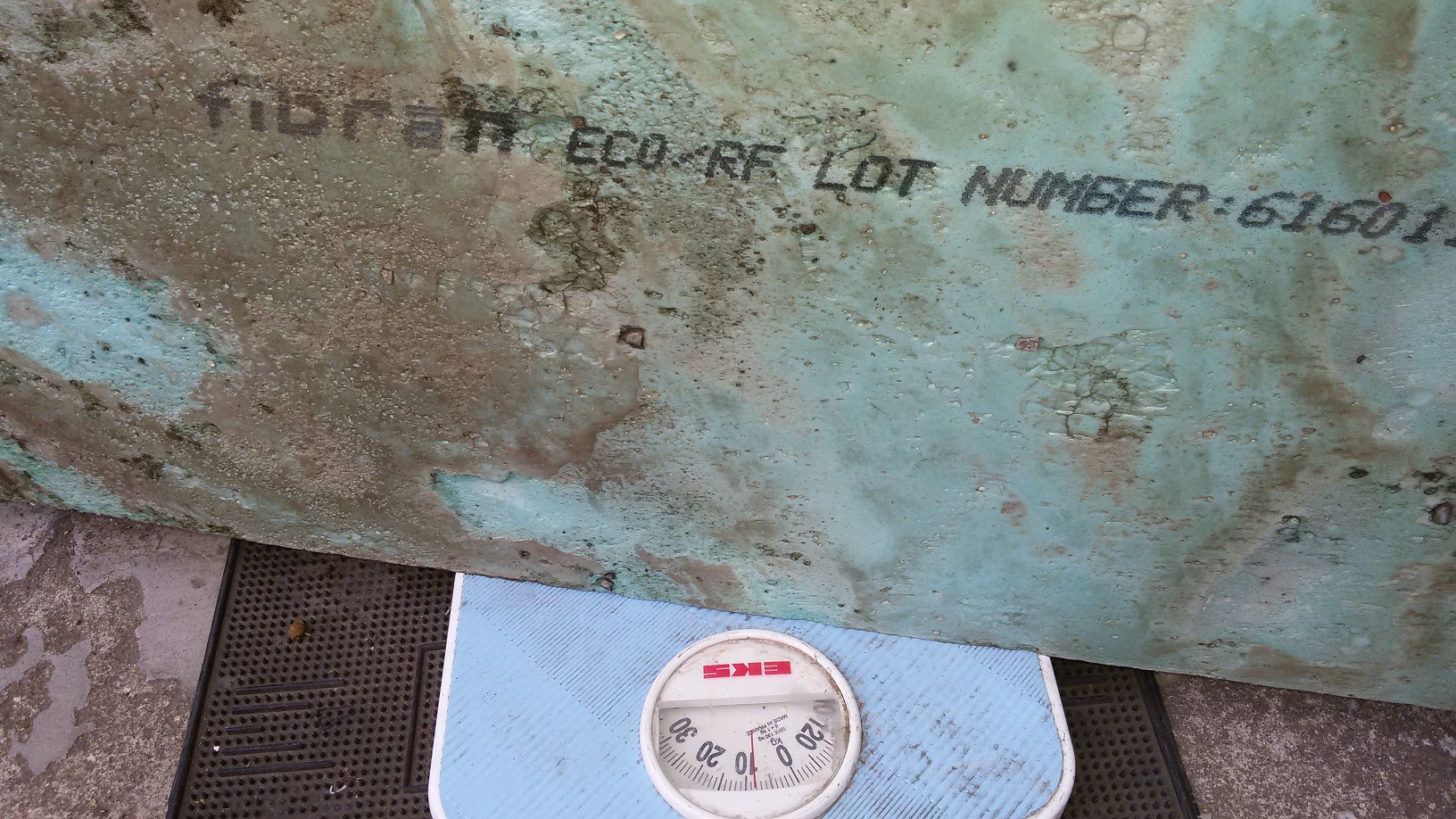 На снимката се вижда теглото (над 8 кг) на лист фибран 20х500х1000.