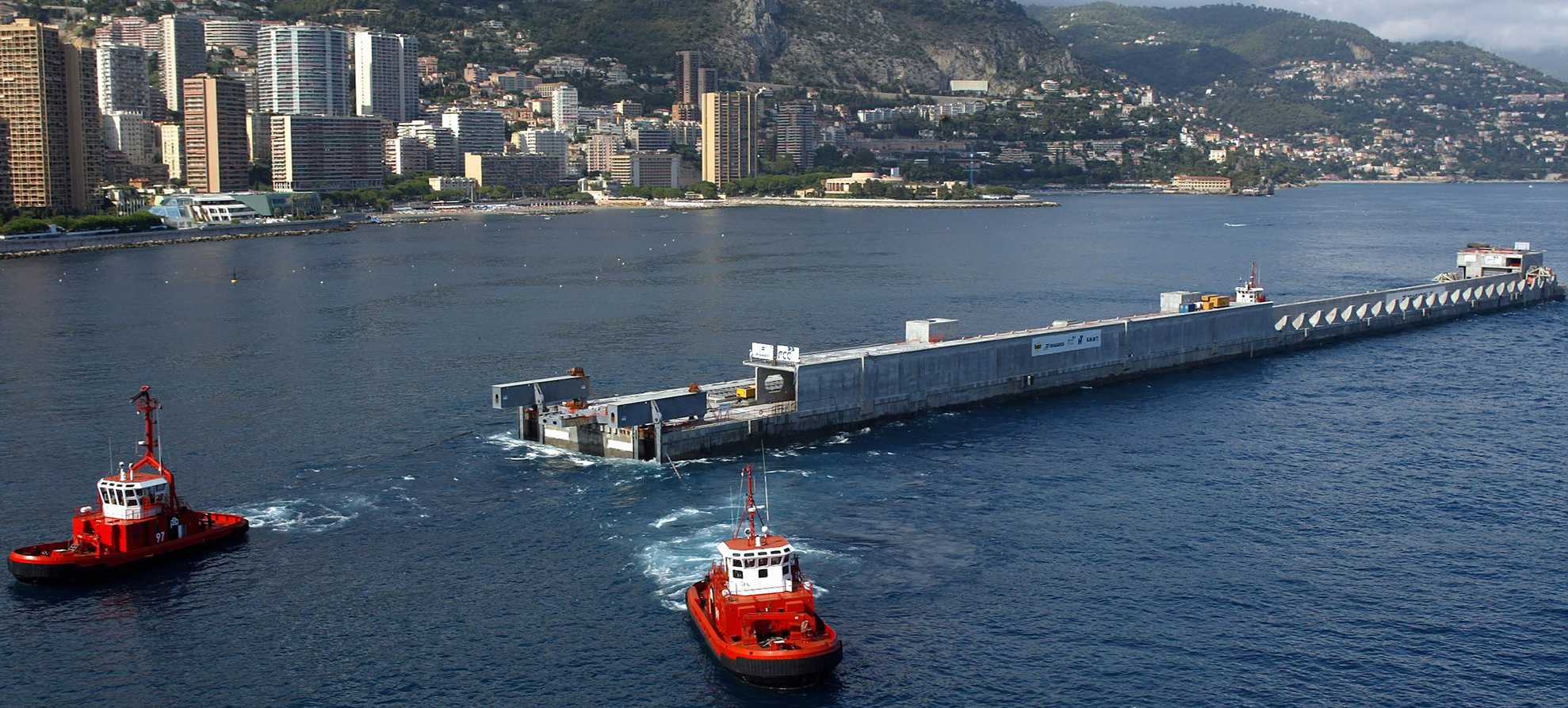 1.2. Кесони (Box Caissons). Могат да достигнат чудовищни размери. Обикновено представляват кухи ст. бет. и по-рядко стоманени клетки, които празни стоят на повърхността на водата и се изтеглят до бъдещата им позиция. Първоначално, най-често се пълнят с вода, за да потънат на точно, определеното място на дъното, след което се напълват обикновено с инертни материали и по-рядко с бетон.