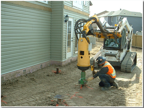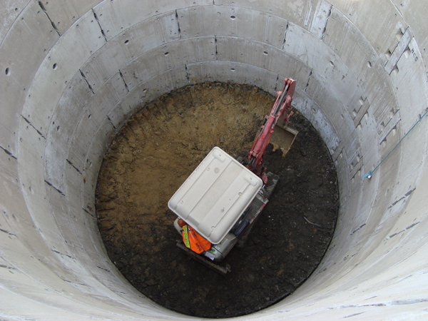 1.4.Сондажни(изливни) пилоти (Piled Walls, Bored Piles). Прави се сондаж с определени диаметър и дълбочина. И както при шлицовите стени, има отново спускане на армировката и бетониране с постепенно изваждане на обсадната тръба. Приложението им е доста сходно с това на шлицовите стени, плюс ползването им за основи на пътни мостове и др. подобни съоръжения, при които прилагането им е по-евтино от традиционното плоско фундиране.