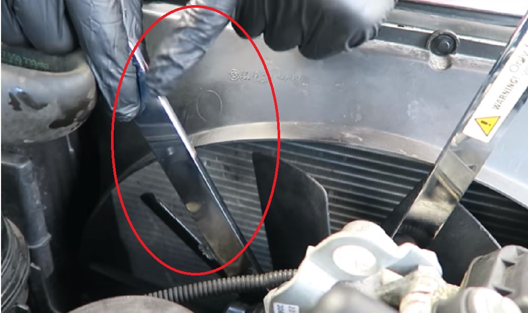 Внимавай, удря се по посока на отвиване, не по посока на оста! А най добре потърси в тубата " bmw cooling fan removal " и гледай някое клипче как се прави.