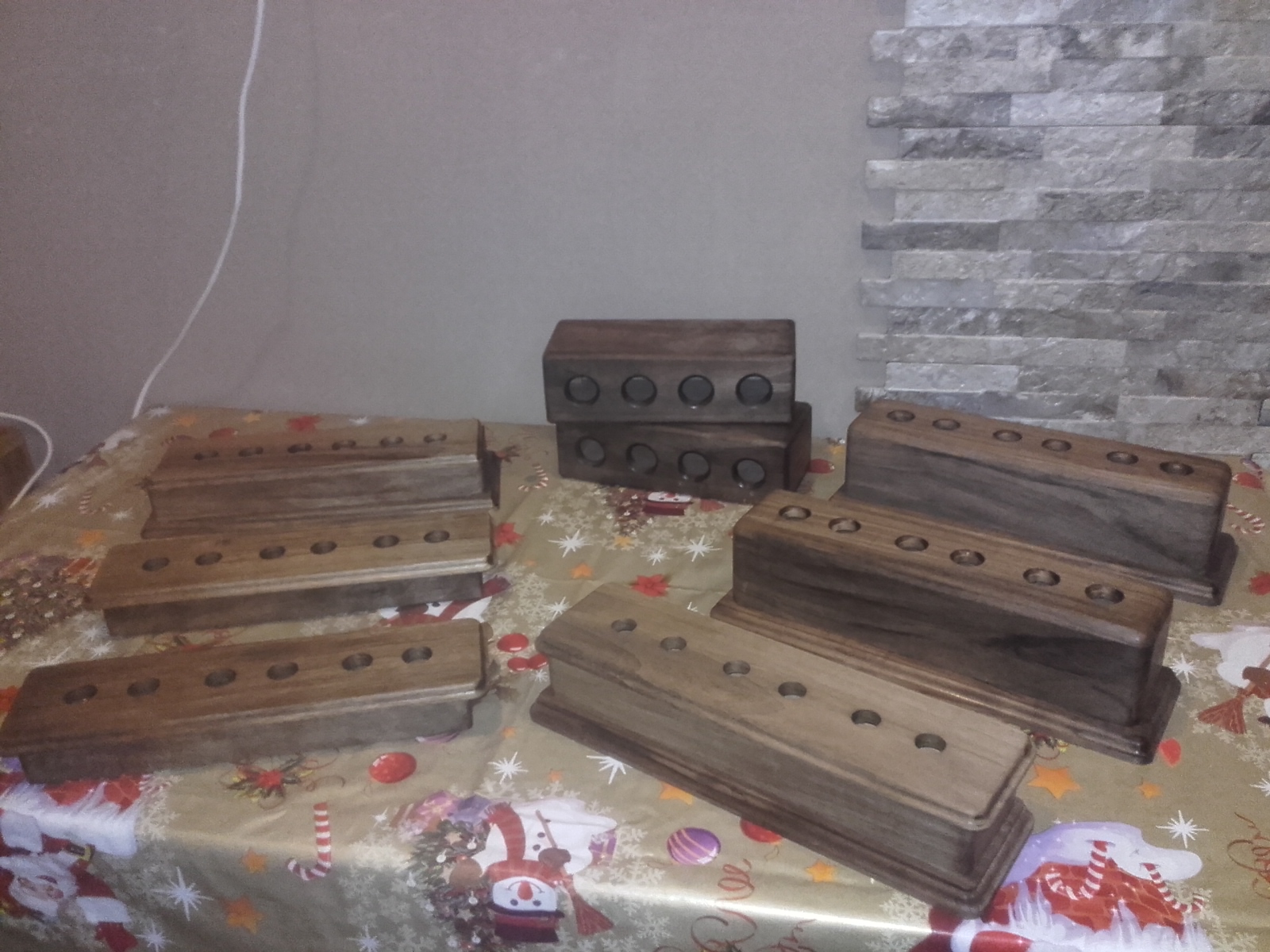 Приключвам годината с тези орехови кутийки за чесовници.От отворите излизат едни стъклени лампи в които свети цифра а електрониката е вътре.Мога да кажа че годината беше успешна доста неща научих и забелязвам че подобрих качеството си на работа.Има още какво да науча и за напред смятам да намаля обема на работа и да наблегна на здравината и точноста на старите зглобки с ръчни инструменти.Весело посрещане на новата година.