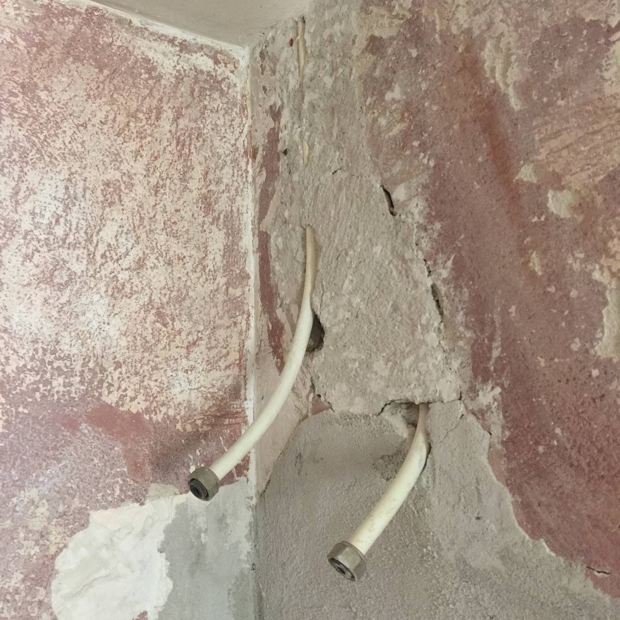 Ето как станаха стените, след като изстъргах старата боя. Стана с шпаклата и много натискане, а там където на падаше лесно нанасях от препарата за боя. Според вас така готови ли са за грундиране стените, преди да мина към слой шпакловка, мрежа, слой шпакловка?