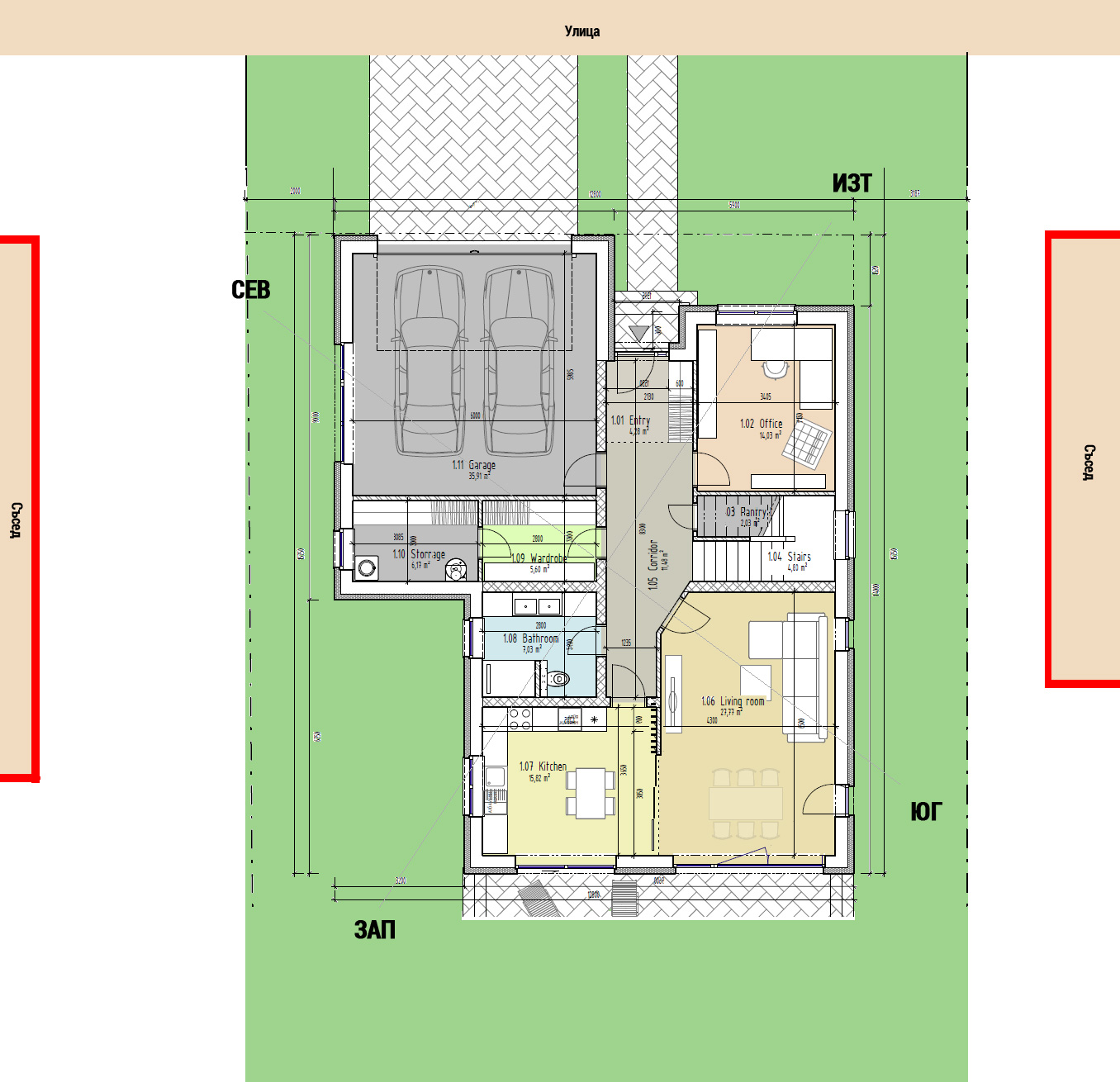 - По възможност хола да е на юг, за да е по светъл и офисът да е долу, за да се ползва на старини за спалня.