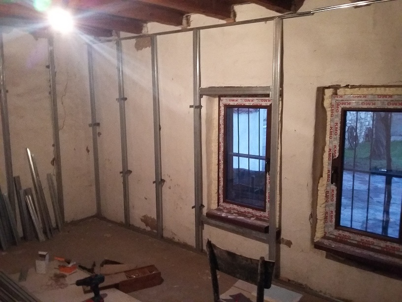 Здравейте.Казуса-стара кирпичена къща.Директните окачвачи са хванати с видии за директен монтаж напртаво в кирпича,само в по-широкия край.Правилна ли е скарата?Картона ще бъде плътно до тавана /гредите/