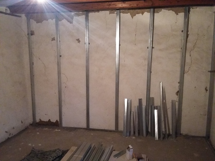 Уд е захваното здраво във гредите.Окачвачите да така,заради голямата разлика в нивата-в единив край е на "нулата".,профила е опрян в стената и бяма как да сложа окачвачи,а и така стана много здраво