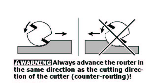 Това "отдясно / наляво" или "отляво / надясно" е много подвеждащо, защото зависи фрезата дали е отдолу или отгоре. Освен това, дали обработвате вътрешен или външен ръб. Най-добре е да знаете, че обработвания детайл се води срещу посоката на въртене на инструмента: