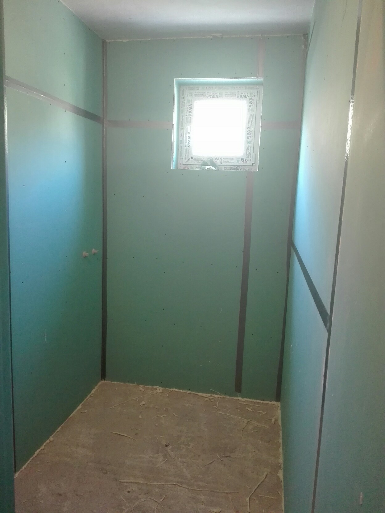 Намира се на втория необитаем (за сега) етаж на двуетажна къща.Тъй като къщата е неизмазана ,собственика е решил навсякъде да прави вътрешна изолация с гипсокартон на конструкция и вата .